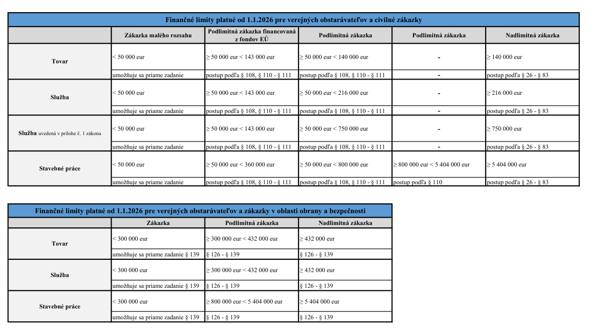 Finančné limity vo verejnom obstarávaní platné od 1.1.2026: