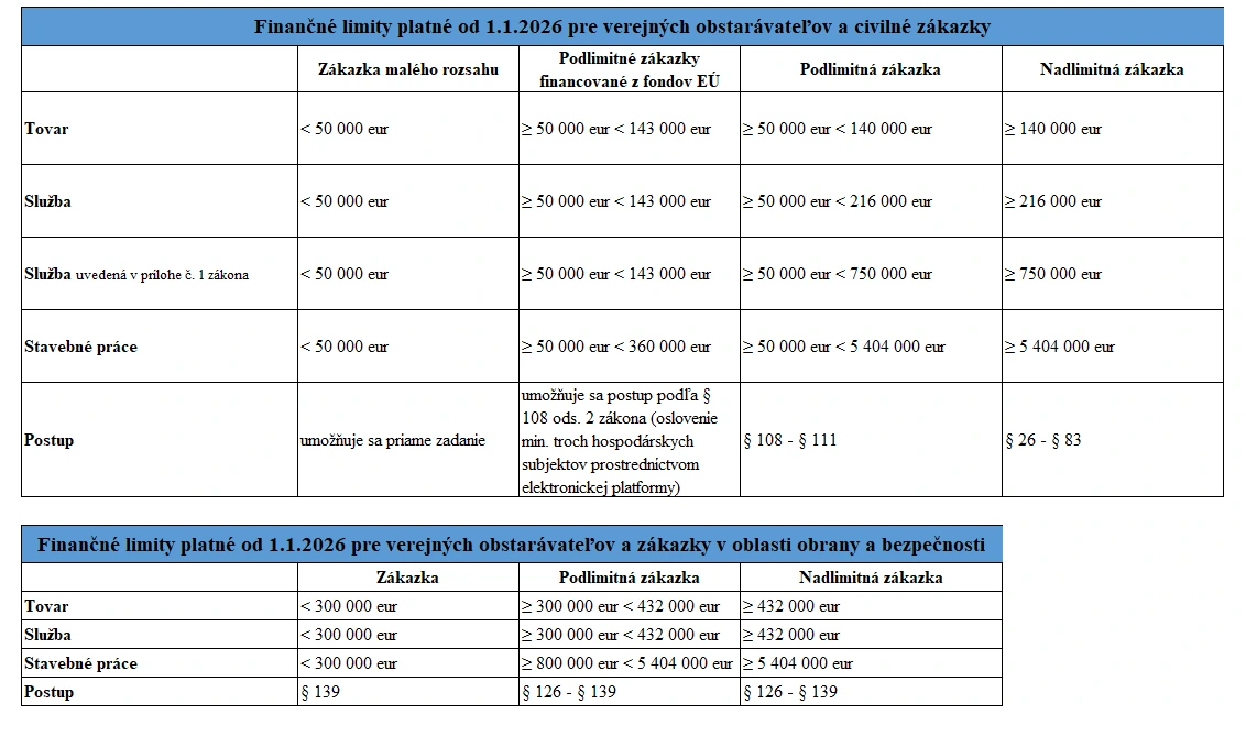 Finančné limity vo verejnom obstarávaní platné od 1.1.2026: